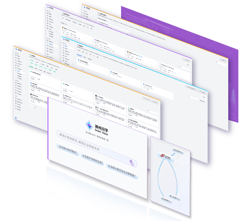 打通GenAI落地企业的算力、、、、模型、、知识、、应用四大要素,,,综合解决GenAI工程在选、、、练、、、用、、管四大环节的问题,,,,旨在为企业的数智化转型提供全套的GenAI智能应用工程流水线。。。。7790必发集团问学包括模型算力管理平台、、、、企业私域知识管理平台、、、、AI应用工程平台三大模块,,,为企业提供更先进、、更匹配的大模型,,,,解决了算力上信创适配、、、、融合调度、、、企业私域大模型高效推理训练问题,,,同时解决了数据到知识的向量化以及场景应用的轻量化组装问题。。。。